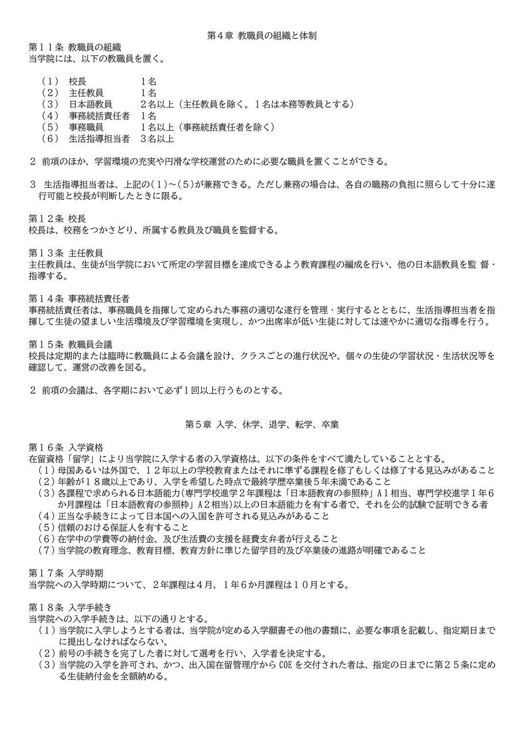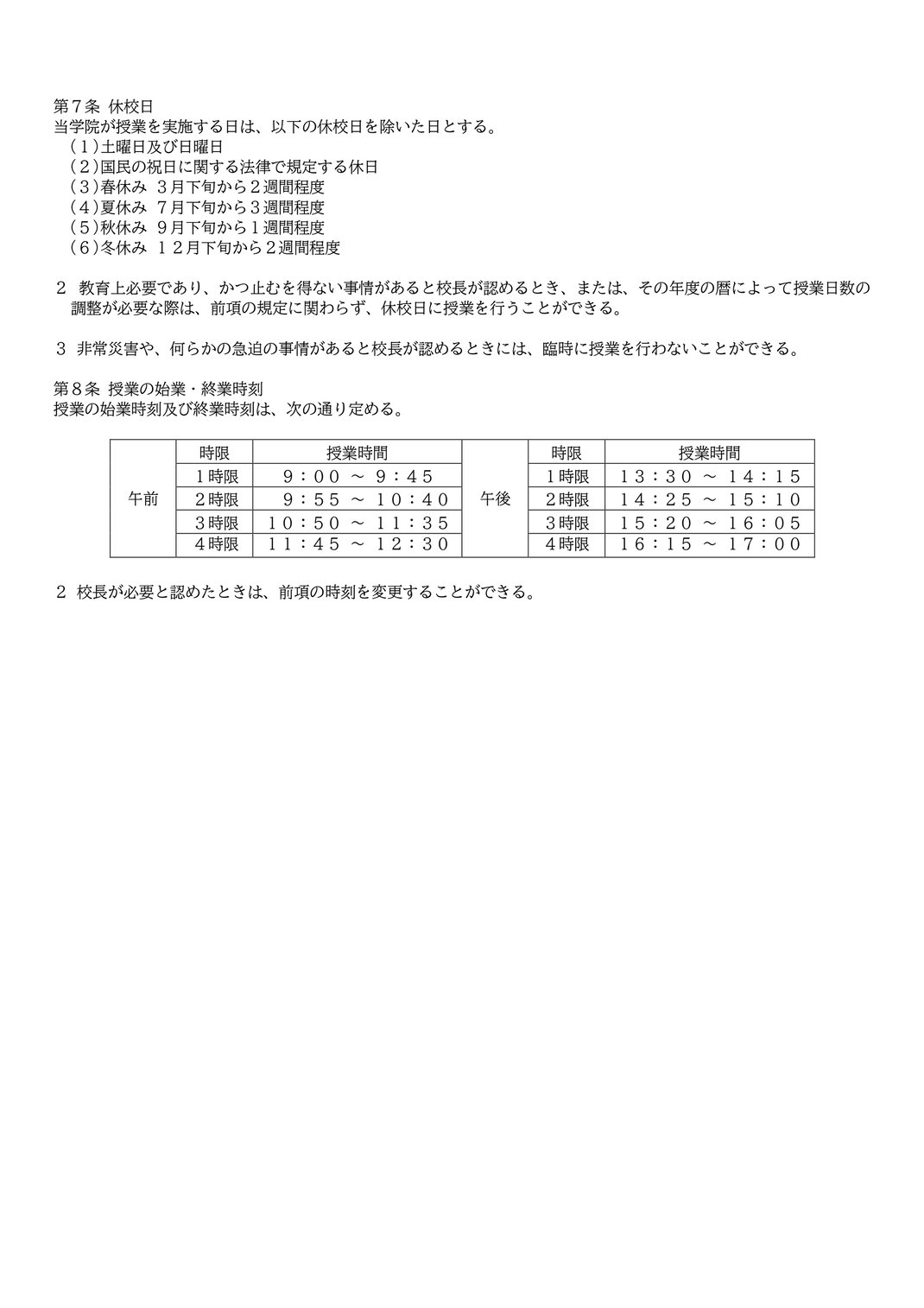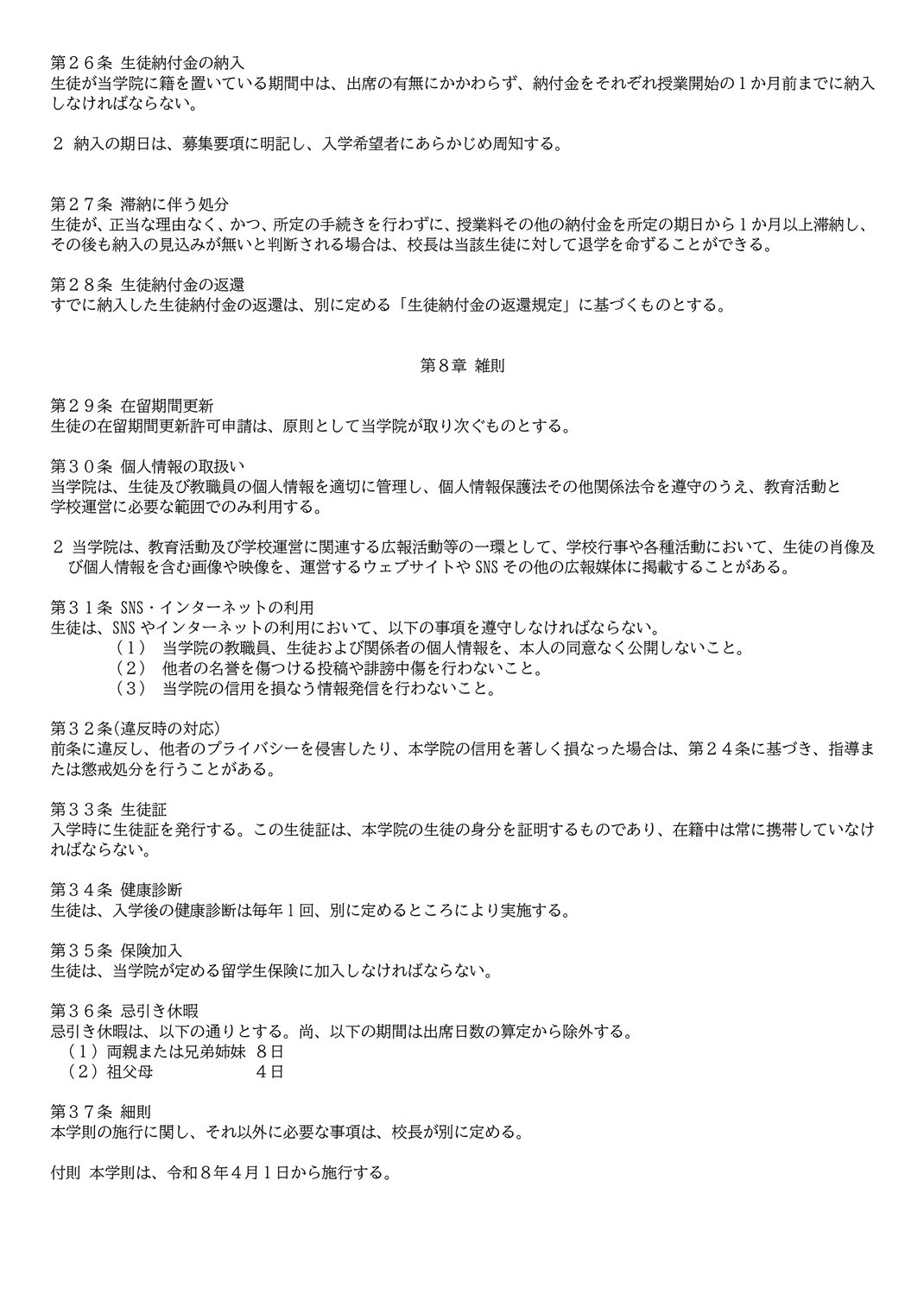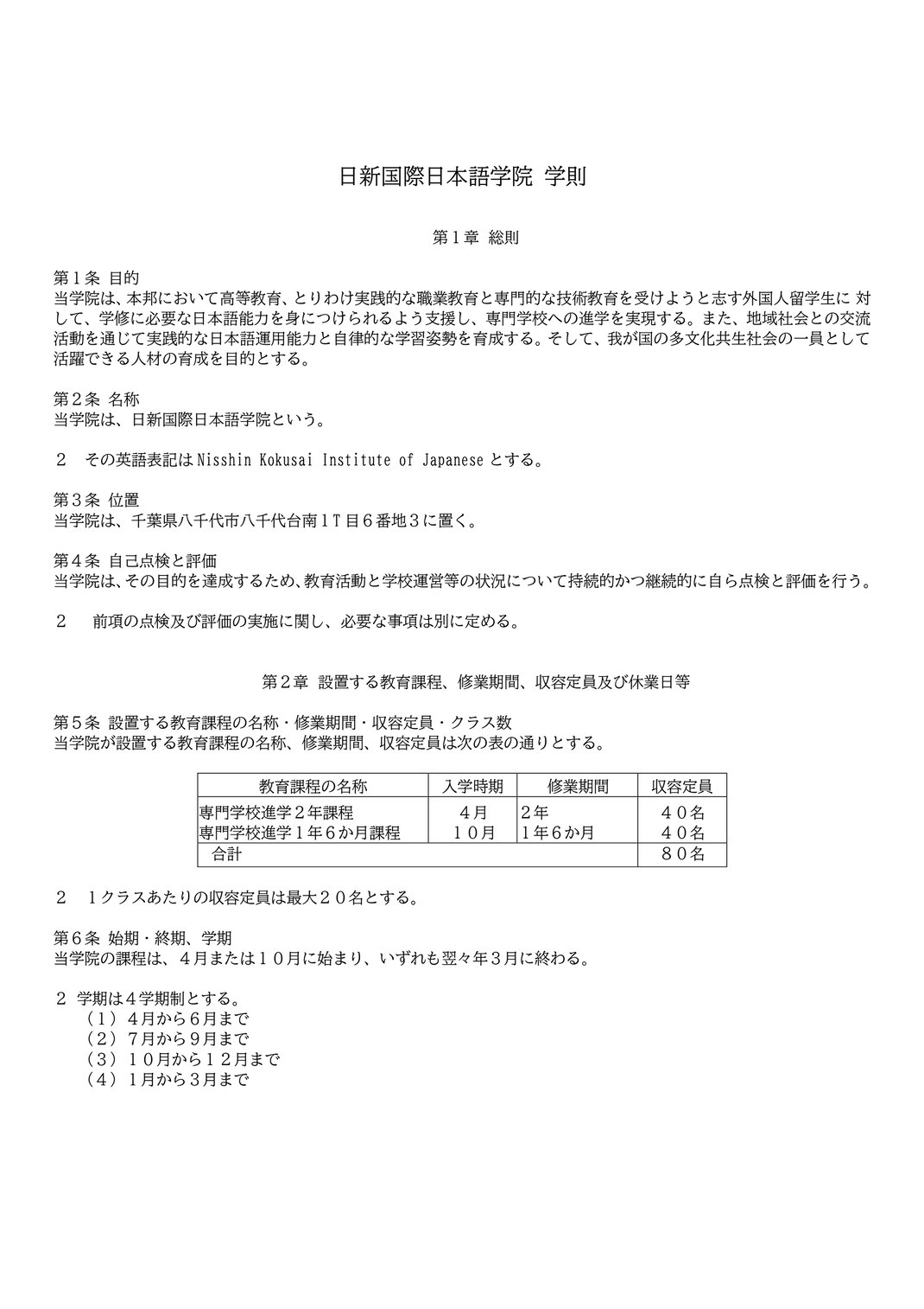 学則 Regulations